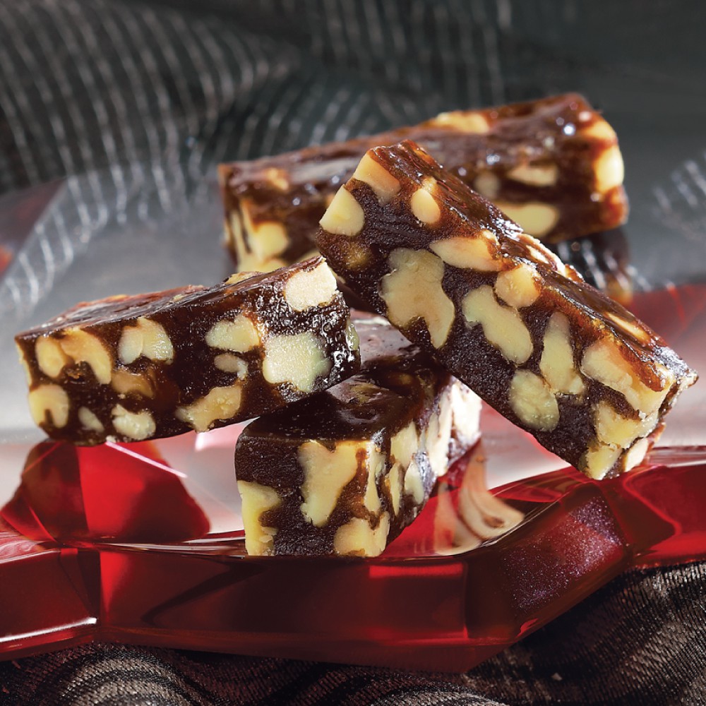 用蘭姆酒浸泡桂圓,和濃純的黑棗攪拌、熬煮,散發出濃醇香的頂級桂圓南棗香氣,再將烤酥過的核桃拌入其中,不甜不膩不黏牙,是滿足的頂級享受。